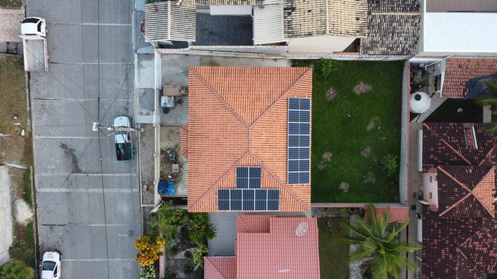 Neste projeto, foram instaladas 14 placas solares de 440 Wp da LONGi Solar e um inversor de 5 kW da Canadian. O sistema foi projetado para atender com eficiência a demanda energética da residência, localizada em uma área urbana e com alto índice de consumo.